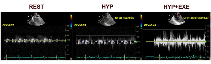 CFV at rest, during hyperventilation and at exercise [29]. HYP: hyperventilation; EXE: exercise