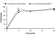 The products were evaluated for weight variation, content uniformity, and dissolution for intact and split tablets. A UPLC-sensitive assay was used for drug quantification.