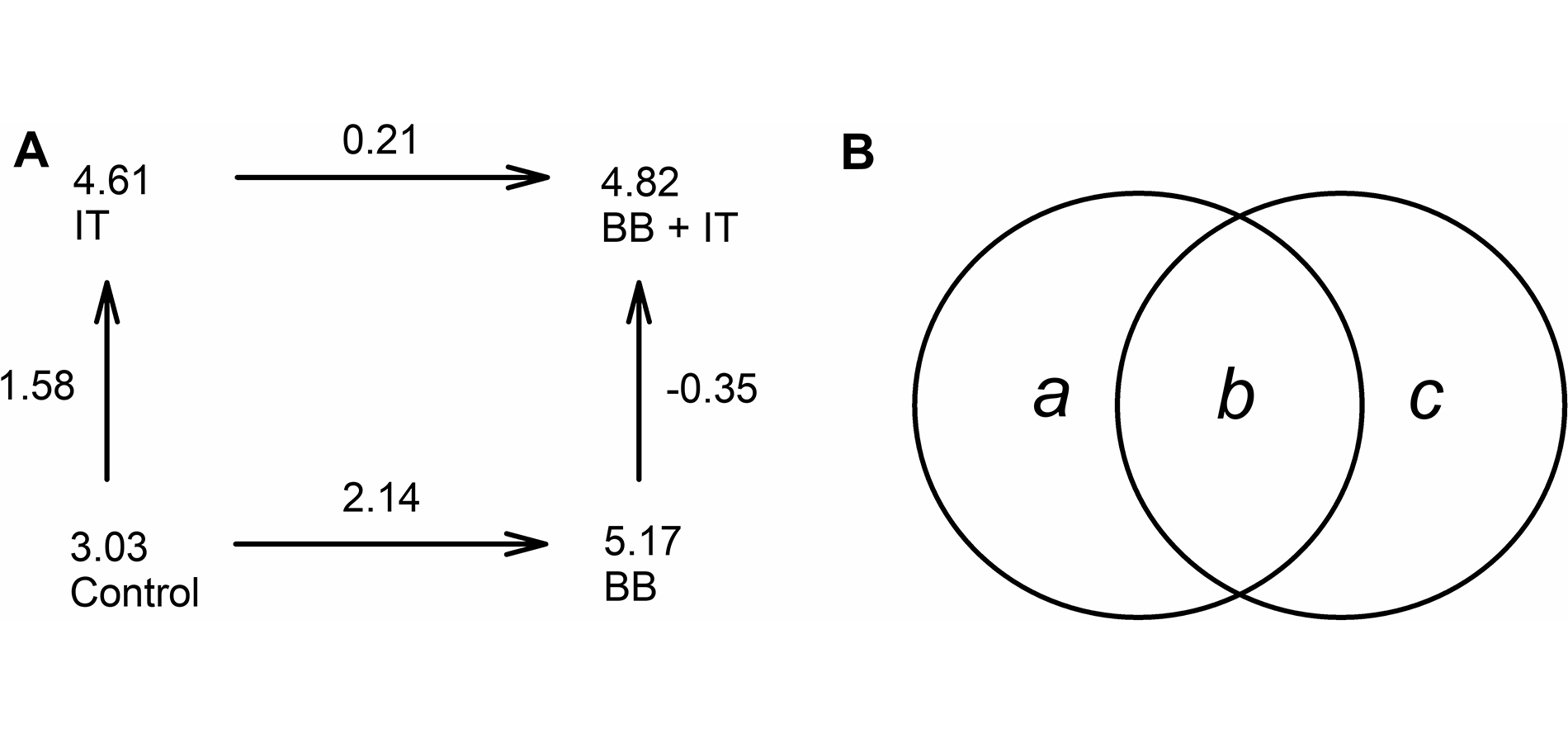 Quantitative analysis of the effectiveness of acoustic neurostimulations. (A) Thermodynamic cycle. The numbers next to the arrows represent the enhancement of each step. (B) Venn diagram of effectiveness of BB and IT treatments. BB: binaural beats; IT: isochronic tones