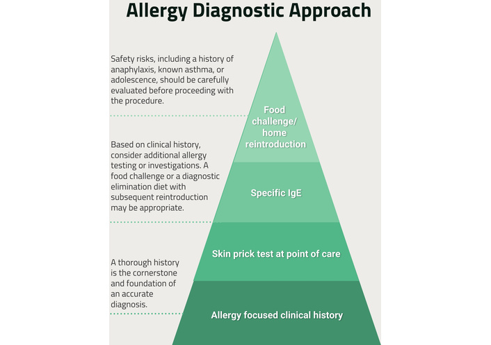 Using specific IgE or SPT for cow’s milk protein alone provides limited sensitivity and specificity without a thorough AFCH [5]. Specific IgE food allergen panels have poor sensitivity, and multiplex IgE technologies should be requested cautiously and interpreted only by allergy specialists, as they require expert knowledge to avoid misdiagnosis and unnecessary dietary restrictions.
