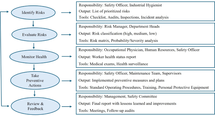 It is also necessary to improve the knowledge on occupational allergies, with a focus on agents able to induce allergies, clinical manifestations, and early recognition, with the aim of achieving better prevention and management. Our studies are addressed to a multidisciplinary and integrated approach for occupational allergies considering different sources of exposure, environmental monitoring, co-factors of exposure, individual susceptibility, integration between traditional and innovative methodologies applied to environmental and biological matrices, collaboration with medical surveillance and with all the prevention system, and research [20–22]. A multidisciplinary workflow in health, safety, and environmental management, encompassing medical surveillance and risk assessment, relies on a structured integration of specialized expertise, with each role having well-defined yet interconnected responsibilities. The workflow implemented in this study is summarized in Figure 1, which depicts how exposure assessment, surveillance, and risk management are integrated within a framework designed for continuous prevention.
