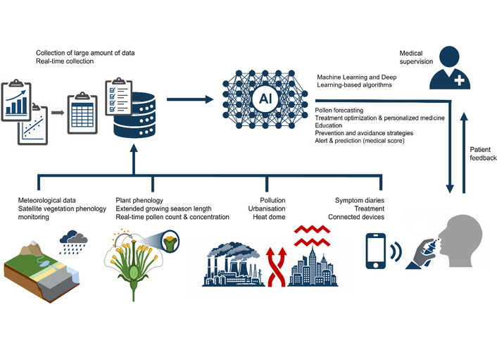 AI-enabled tools and platforms for pollen forecasting and patient monitoring.