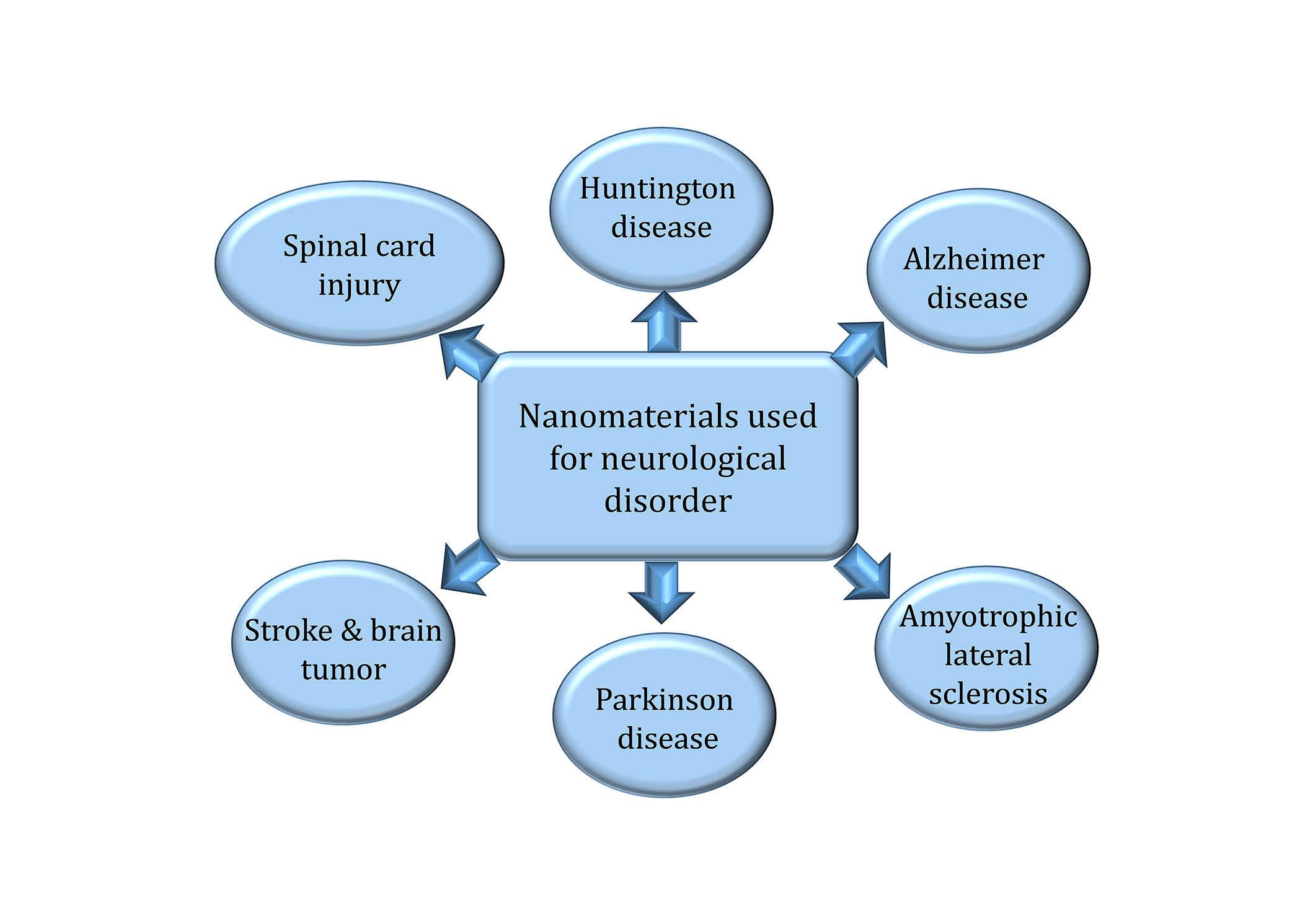 In Figure 2, nanomaterials usage for neurological disorders has focused on spinal cord injury, Huntington’s disease, AD, Parkinson’s disease, amyotrophic lateral sclerosis (ALS), and conditions such as stroke and tumors in the brain. These nanomaterials are indispensable in augmenting methods of treatment and delivering them as well as increasing efficiency in the management of complicated neurological disorders. These features provide considerable possibilities for future progress in the neurosciences and neuro therapeutics.