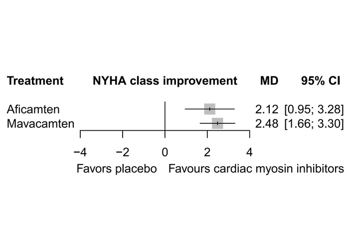 | Mavacamten | Placebo | 4 | 2.48 [1.66; 3.30] | |