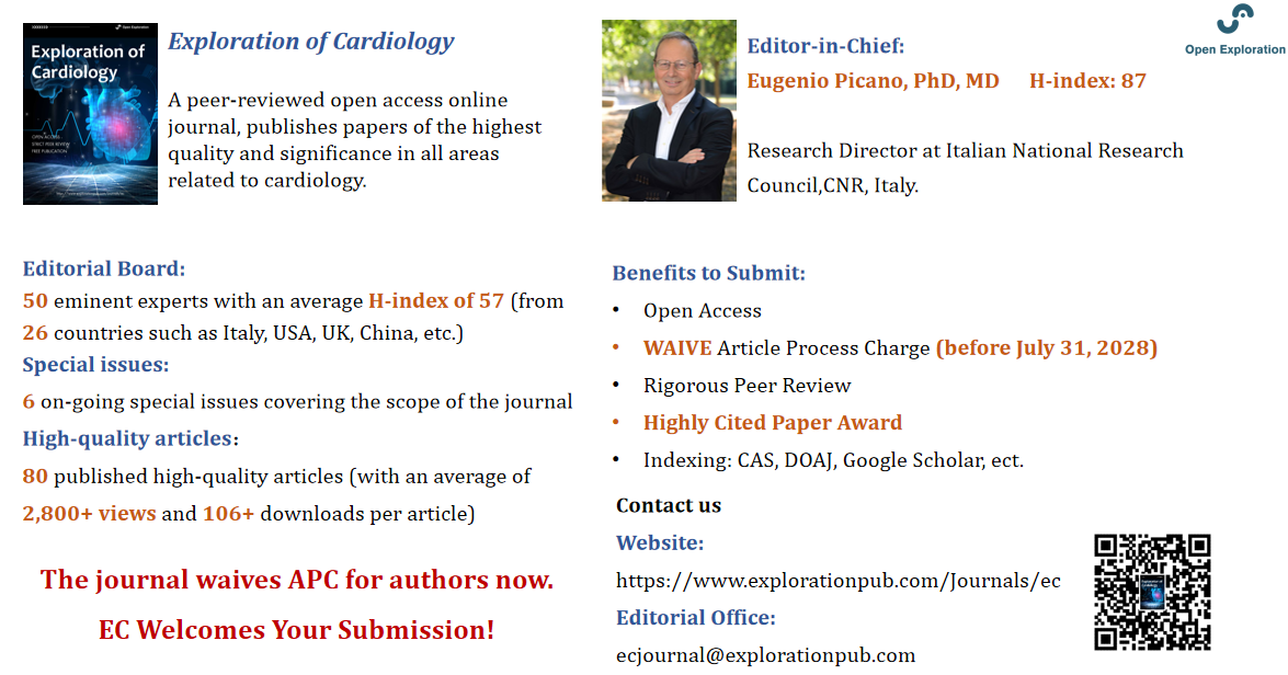 Moving forward, EC will continue to provide an open access platform for high-quality studies while maintaining rigorous peer review and ethical publishing practices, thereby enhancing academic development and communication in the field of cardiology research.