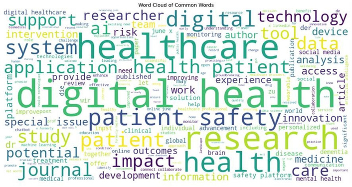 Finally, we acknowledge the limitations of using social media content as research data when interpreting our findings. Our analysis captures participants’ engagement and perspectives during a networking event, which offers insight into community interests but does not directly measure the real-world effectiveness or outcomes of the technologies discussed. Accordingly, we have confined our conclusions to describing how the digital health community interacted and what topics were trending, rather than making broad generalizations about healthcare impact. This approach ensures our interpretations remain grounded in the available data and avoids overstating the implications.