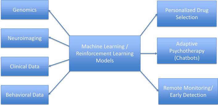 The absence of reliable biomarkers and predictive tools further complicates treatment. Innovative care models are needed to bridge these gaps. Chile’s Regime of Explicit Health Guarantees, which integrates pharmacological and psychosocial interventions at the primary care level, has improved access and outcomes [21]. In Zimbabwe, the Friendship Bench program trains lay health workers to deliver psychological support, expanding mental health coverage in a cost-effective way [22]. Such initiatives demonstrate how scalable, community-based solutions can reduce delays and improve treatment outcomes, bringing care closer to personalized, evidence-informed standards. However, ensuring sustainable funding and equitable implementation across diverse populations remains a major challenge [23]. Stigma and systemic inequities continue to shape access to mental health care. Structural stigma reflected in policy neglect, underfunding, and institutional bias exacerbates existing disparities. Marginalized groups, including ethnic minorities, LGBTQ+ individuals, and those in poverty or conflict zones, face compounded barriers to diagnosis and treatment. Cultural stigma may discourage care-seeking, while economic and geographic limitations render services inaccessible. Eliminating stigma is not a secondary issue but a fundamental requirement for achieving mental health equity [24]. Yet stigma, inequity, and the persistent lack of personalized diagnostic tools highlight the urgent need for innovative, data-driven approaches to psychiatric care. Traditional methods, though valuable, remain constrained by subjective assessment, limited scalability, and uneven access across populations [25]. Recent advances in computational science have introduced the possibility of integrating large-scale biological, psychological, and behavioral data to generate more objective insights into psychiatric conditions. Within this evolving landscape, AI and its subfields offer powerful means to address long-standing diagnostic and treatment challenges by identifying complex, multidimensional patterns that elude conventional analysis [26].