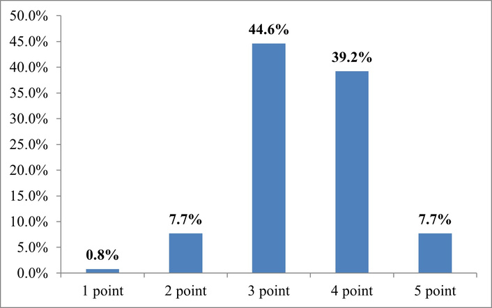 Interpretation of answers to the question “Rate your experience using online consultations on a scale of 1–5 (1—very dissatisfied, 5—very satisfied)” (on a Likert scale). Source: compiled from anonymized survey results.