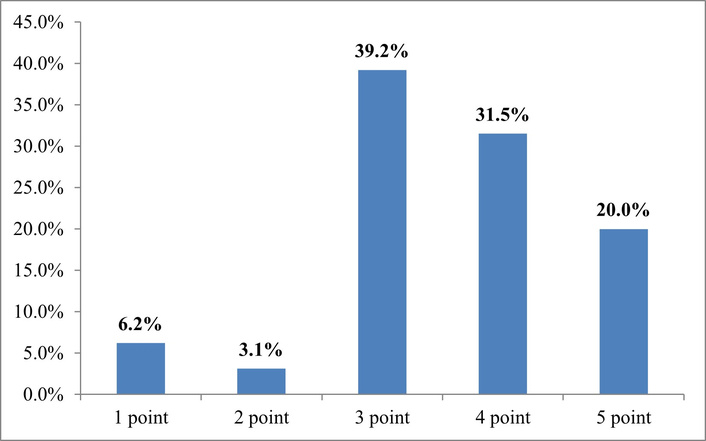 A substantial proportion of respondents (29.2%) chose the average rating (“3 points”), which may indicate two parallel effects: either insufficient awareness of the possibilities of modern digital rehabilitation (telephysiotherapy, digital progress monitoring, online consultations with a psychologist), or unequal access to such solutions in the regions.