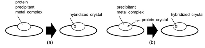 Schematic drawings of (a) the co-crystallization method, and (b) the soaking method.