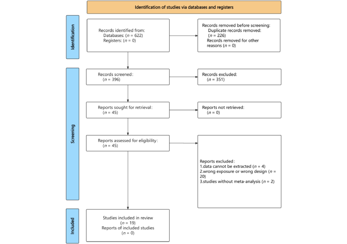 To integrate studies with varying measurement units, we extracted raw data for significant effect sizes, standardized them using the SMD, and reanalyzed each study with RevMan 5.3. Results were expressed as SMD with 95% CI. The I2 statistic and Cochran’s Q test P-value were recalculated. A random-effects model was applied if I2 exceeded 50%; otherwise, a fixed-effects model was used. For non-significant effect sizes, results were taken directly from the original studies. We recalculated Egger’s regression test P-value for analyses with at least 10 studies [25]. Each meta-analysis detailed indicators, case numbers, and participant information from the original studies. For Class I or II classifications, we performed a sensitivity analysis when sufficient data allowed evaluation of evidence credibility changes after excluding certain studies. When reanalysis was not possible, we extracted summary data to assess heterogeneity and publication bias. A P-value < 0.10 indicated significant heterogeneity, while other tests used a significance threshold of P < 0.05. Evidence synthesis was conducted with RevMan 5.3, and Stata 15.1 was used for Egger’s test and sensitivity analysis.