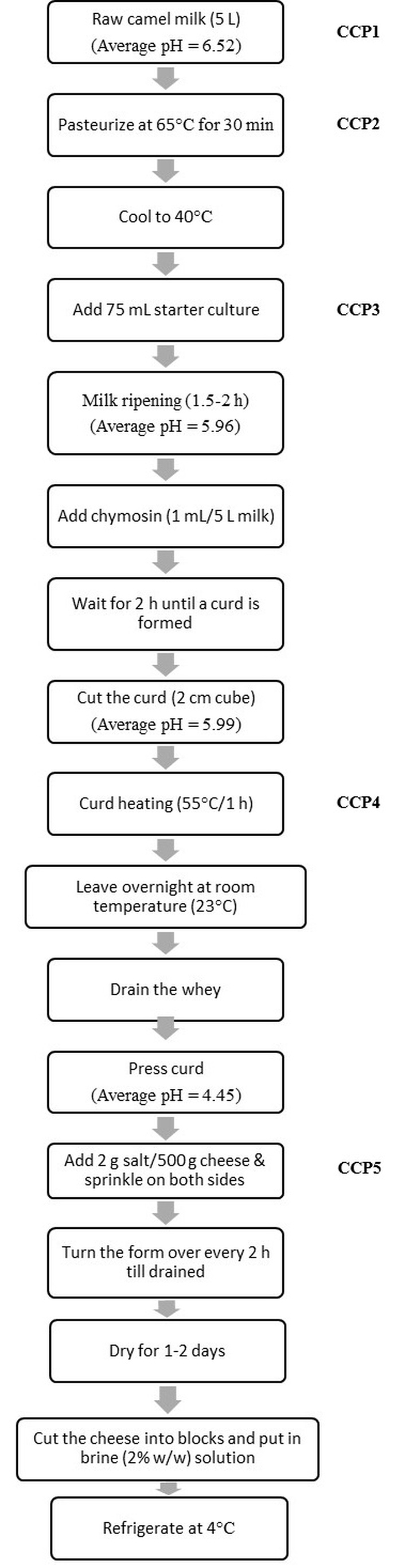 Manufacturing procedures for Feta-type cheese from camel milk [22]. CCPs: critical control points.