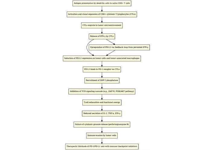 Interrelationship of PD-L1 expression and TILs in immunoregulation and immunotherapy. It presents a streamlined cellular pathway flowchart that elucidates the intricate mechanism underlying PD-L1 expression and the interaction with TILs within the tumor microenvironment. This diagram is structured to illustrate the sequential and interrelated biological processes that contribute to the immune evasion tactics employed by tumors. PD-L1: programmed death-ligand 1; PD-1: programmed death-1; TILs: tumor infiltrating lymphocytes.