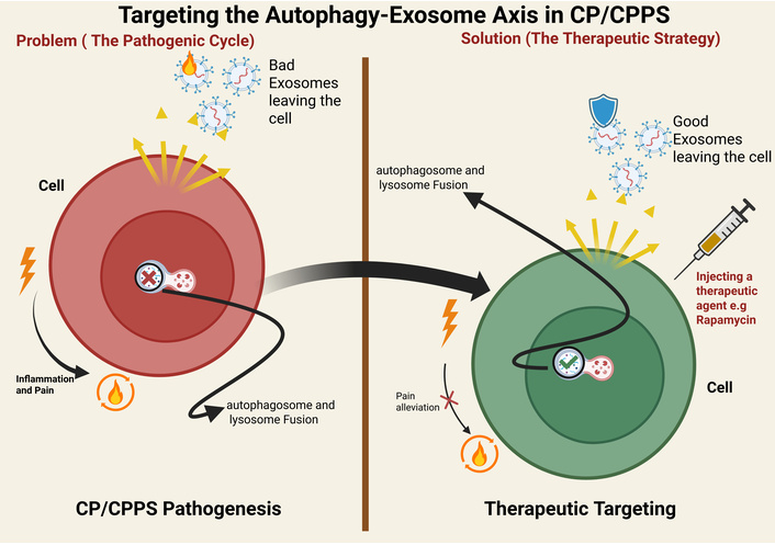 Ultimately, the path forward is not to prematurely champion unproven therapies, but to carefully de-risk the underlying biology. The main goal must be to find conclusive evidence that the modulation of the autophagy-exosome axis in a specific way can safely and effectively alter the progression of CP/CPPS in humans. These strategies can be regarded as high-potential and high-risk avenues in exploratory research until such evidence is available.