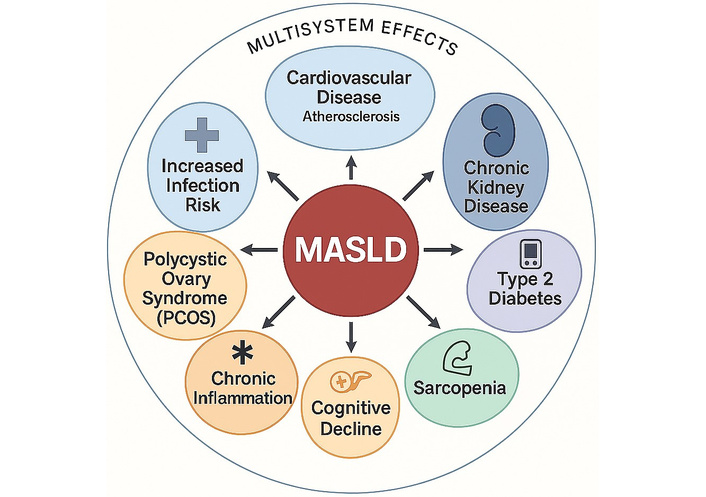 Additionally, MASLD adversely impacts renal risk, accelerating progression to chronic kidney disease (CKD) through shared inflammatory mechanisms [40, 41].