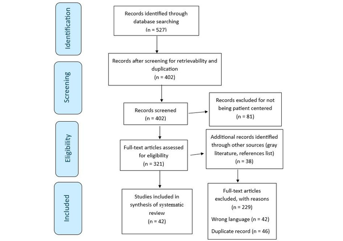 A final body of 42 original peer-reviewed articles was included in this systematic review. Figure 1 illustrates the flow of study screening and inclusion/exclusion. This systematic review was registered on Open Science Framework, maintained by the Center for Open Science (https://osf.io/).