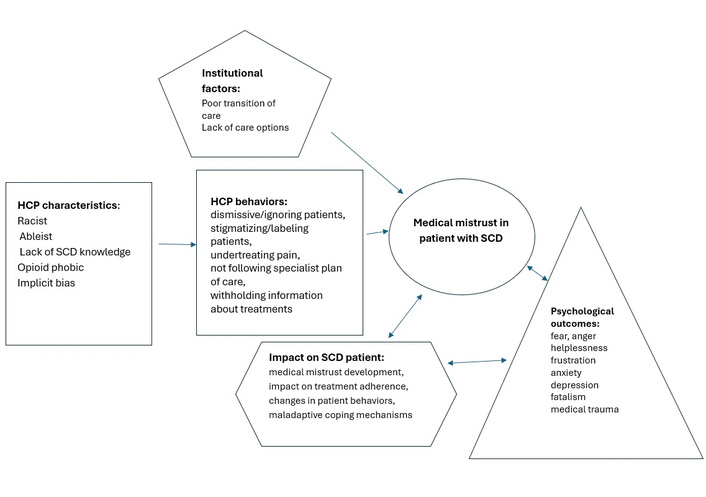 Conceptualization of medical mistrust development in patients with sickle cell disease (SCD). HCP: healthcare provider.