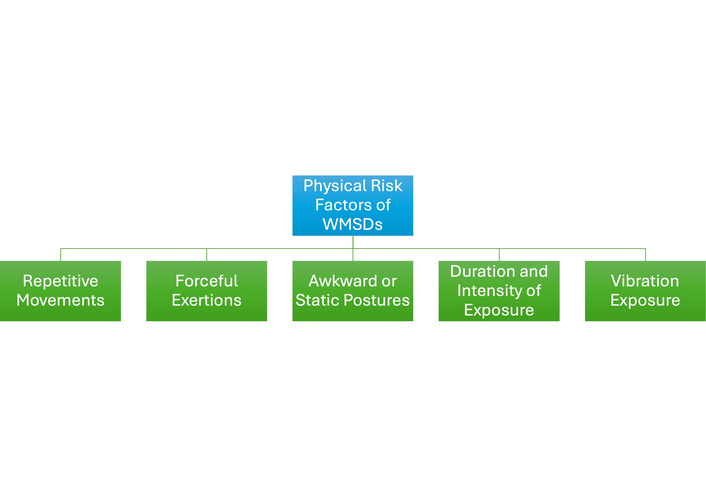 Forceful exertions: Tasks requiring high force, such as heavy lifting or grip strength, elevate WMSD risk, especially when combined with awkward postures [36].