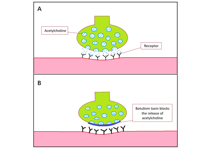 The first report of using BoNT in children with cerebral palsy was published by Koman et al. [55] in the United States in 1993. Very soon, a similar study was reported by Cosgrove et al. [56] in the United Kingdom in 1994. From then on, many reports in support of BoNT have been published, thereby establishing consensus for its role in the management of cerebral palsy [57–59]. Today, its use has become a standard treatment modality to treat dynamic contractures of both upper and lower limbs, thereby reducing the use of other treatment modalities substantially. Botulinum neurotoxins are naturally produced by bacteria of the Clostridium botulinum family and act on the neuromuscular junction to inhibit the release of acetylcholine from the presynaptic terminal (Figure 3). This produces a sort of chemical denervation of the injected muscle, thereby reducing spasticity. Its use has been reported to be safe and free from any central effect as it does not cross the blood-brain barrier. However, the incidence of systemic spread has been reported with the effects observed at other sites away from the actual site of injection. The effect is short-lived, and the muscle spasticity typically recurs after 3–6 months due to the nerve endings regaining their potential to produce acetylcholine by axonal sprouting. This leads to the need for repeated injections. Nevertheless, the muscle strength is reduced due to acute muscle atrophy, and the duration of decreased spasticity helps other rehabilitative measures to take over and produce considerable gains in the function and gait of the patient.