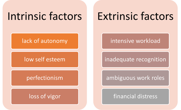 Risk factors | High caseloads, lack of support, workplace conflicts, exposure to bullying, and lack of job security. |