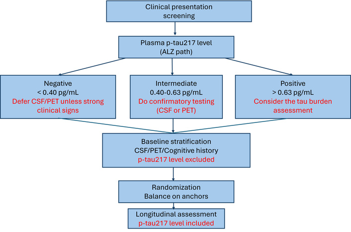 This workflow (Figure 2) acknowledges what is the usefulness of the plasma p-tau217, showing its strengths at two points in the pathway, without forcing it into a stratification job that it cannot perform reliably.