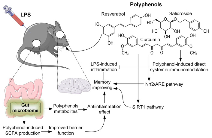 Systemic inflammation is a well-established contributor to cognitive decline across neurodegenerative disorders, including Alzheimer’s [1, 2] and Parkinson’s diseases [3, 4], as well as age-related neurodegeneration [5, 6]. Particularly relevant are inflammation-associated memory impairments [7, 8], highlighting the urgent need for dietary compounds that can modulate neuroinflammatory pathways. Polyphenols represent promising candidates due to their dual anti-inflammatory properties and suitability for dietary incorporation, offering a practical preventive approach against inflammation-driven cognitive deterioration.