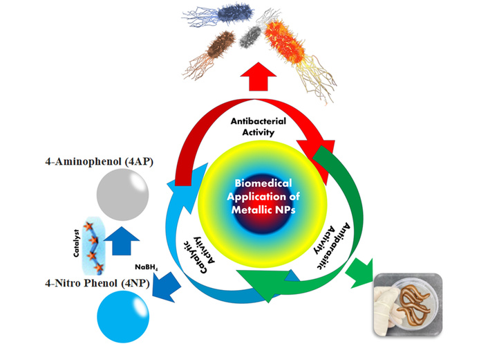 Nanotechnology is now recognized as one of the critical research endeavors of the early 21st century. This field attracted more interest at the beginning of the 21st century, and scientists have taken advantage of the unique features of atomic and molecular assemblages produced at nanometer scales [1]. Richard Zsigmondy first proposed the concept of a “nanometer” and was awarded the Nobel Prize for this in chemistry in 1925. He studied nanomaterials and then characterized their particle size, shape, and morphology with the help of a microscope. Nanoparticles (NPs) are the most essential components for the development of nanostructures. NPs are regulated by Newton’s laws of motion, and quantum mechanics shows that subjects are larger than an atom or simple molecules [2]. A technique that is applied at the nanoscale is called nanotechnology and has unique phenomena, making it suitable for different applications. Its size ranges from 1 to 100 nm of matter at the atomic and molecular scale [3, 4]. Compared to materials with a larger scale, they have different properties. Nanomaterials have been used in different physical and chemical methods to achieve novel commercial applications, and societal benefits are also possible. At the end of the 20th century, new openings were sought for the development of innovative nanomaterials and nanosystems. The novel discovery is of nanoscale materials, processes, and phenomena, as well as new experimental and theoretical study methods. This field is enhancing scientific and technological possibilities [5]. Nanotechnology encompasses the usage of nanomaterials, as well as many methods for synthesizing, such as physical, chemical, and biological, at scales ranging from a single atom or molecule to submicron dimensions. Similar effects on society and the economy were seen in the 20th century with the development of semiconductors, information, and cellular and molecular biology technologies [6]. Nanotechnology has the potential to have a significant impact on the synthesis of novel materials for the development of new products, the replacement of existing manufacturing equipment, the reformulation of novel materials and chemicals for improved performance, and the use of novel materials and chemicals for the remediation of the environment [7]. Normally, bioentities such as enzymes, amino acids, dietary fibers, RNA, DNA, and viruses occur naturally as components of biological structures, but nanotechnology can be used to synthesize, mimic, or manipulate them for various applications [8].