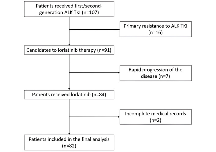 Flow diagram of patients included in the analysis of the study. ALK: anaplastic lymphoma kinase; TKI: tyrosine kinase inhibitor.